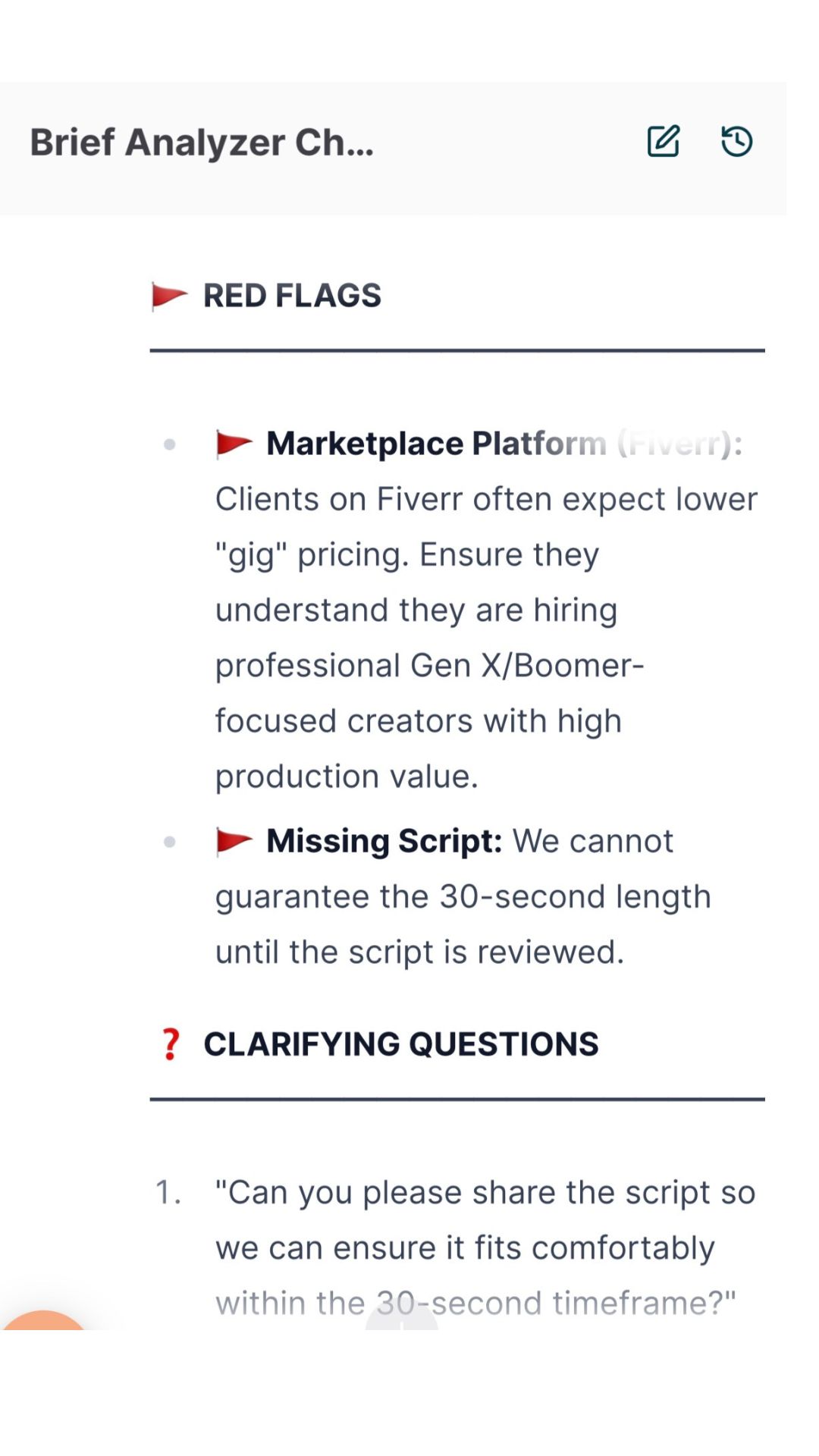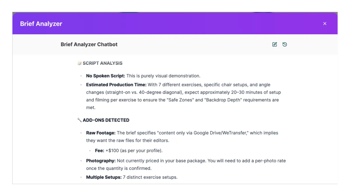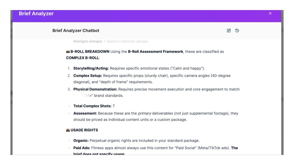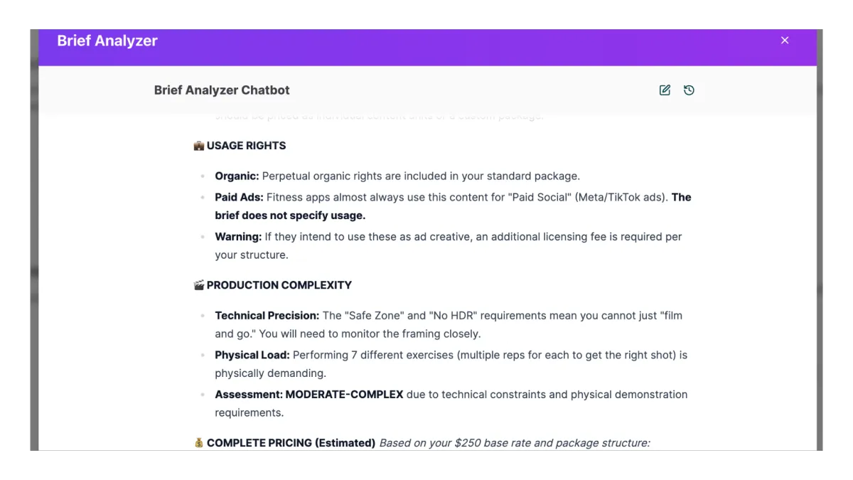 Instead of generating ideas from a blank page or improvising (hallucinating) responses, the Sidekick works inside a defined system built specifically for UGC work.